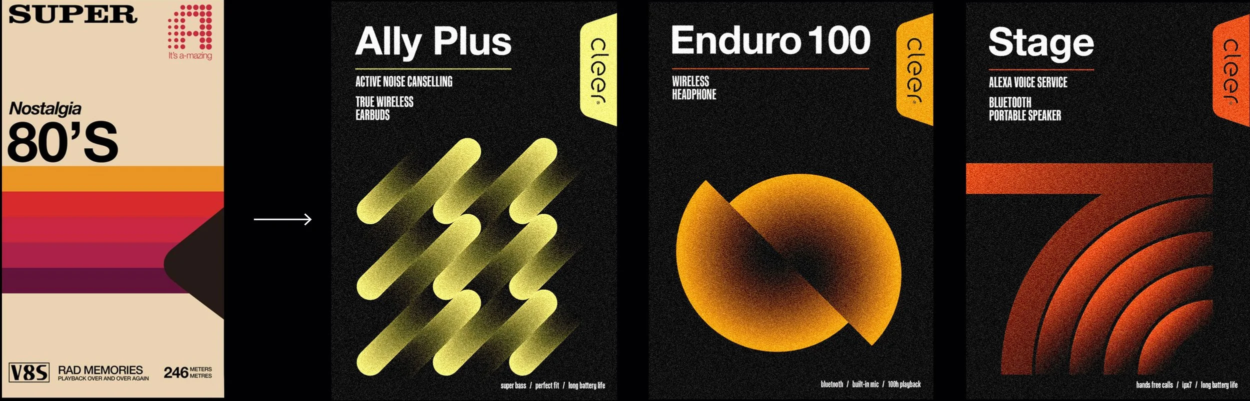 I combined research lifestyle findings and color inspiration and came up with idea to take VHS tapes as main reference for a graphic approach.